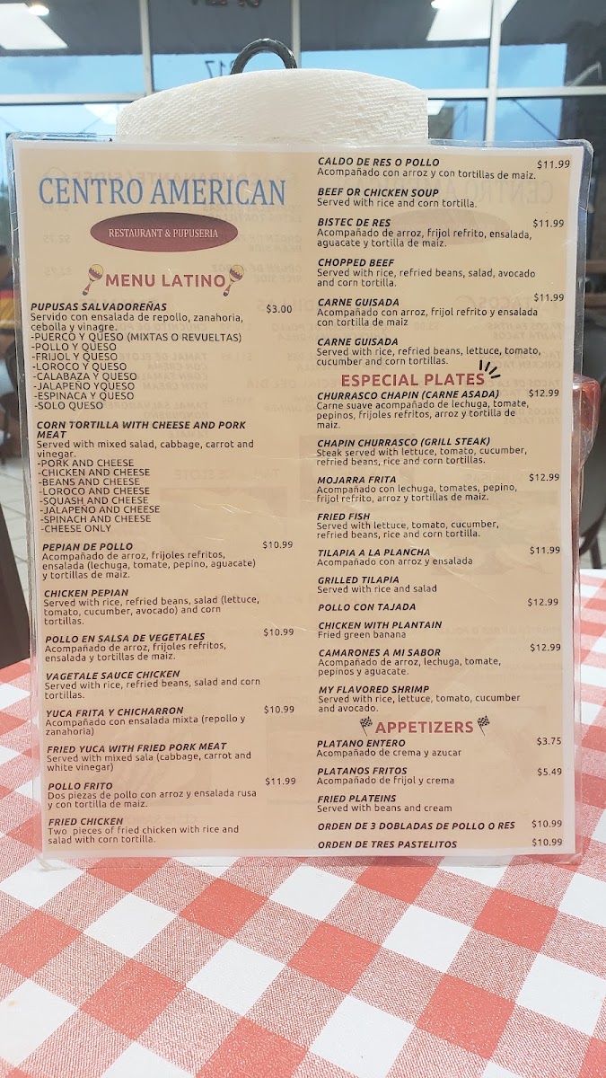 No matter what you choose, Centro American Restaurant & Pupuseria promises a delicious and memorable dining experience that captures the essence of Latin American cuisine with a touch of comfort food.